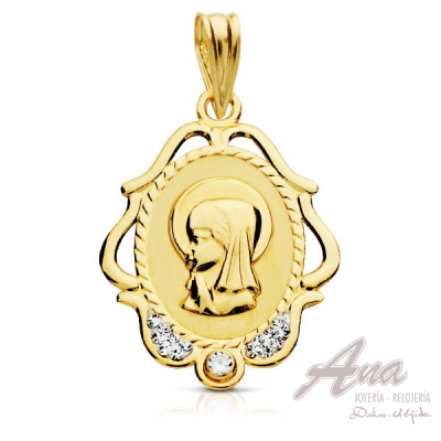 MEDALLA VIRGEN NIÑA 9 KTES CIRCONITAS. 22 X 17 MM.
