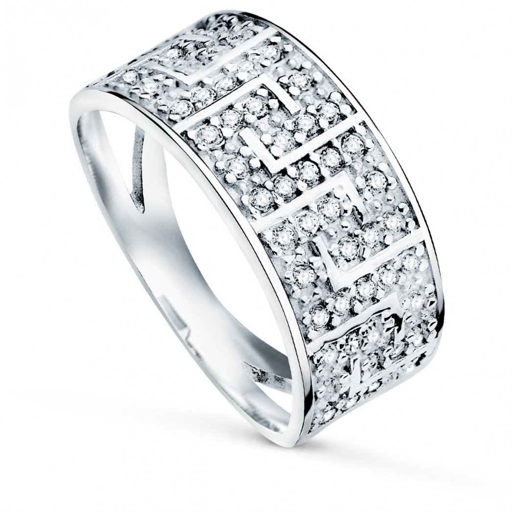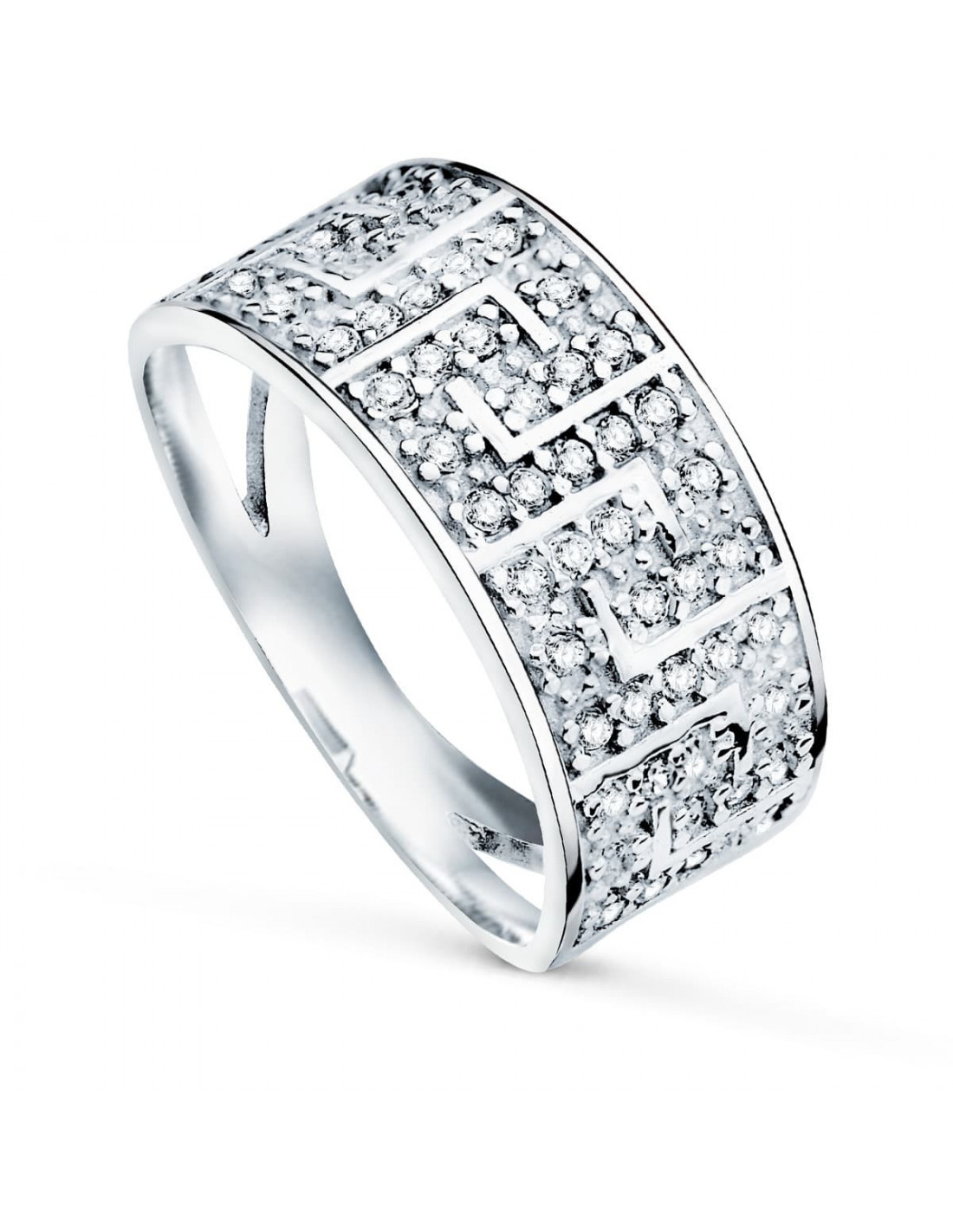 9K SORTIJA ORO BLANCO CON CIRCONITAS Y DIBULO DE GRECA ANCHO CUERPO 9 MM