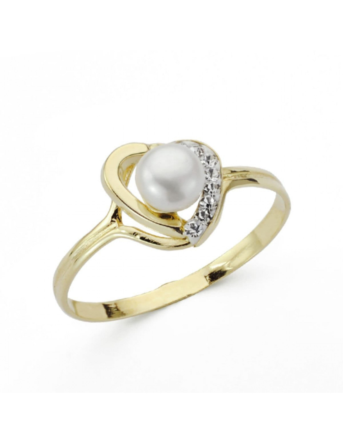 9K SORTIJA ORO AMARILLO CORAZON Y PERLA ANCHO CUERPO 1.5 MM