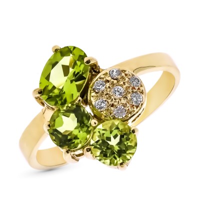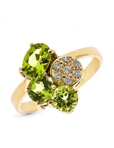 9K SORTIJA ORO AMARILLO OLIVINA NATURAL 1.97 QTS. CALIDAD AAA+