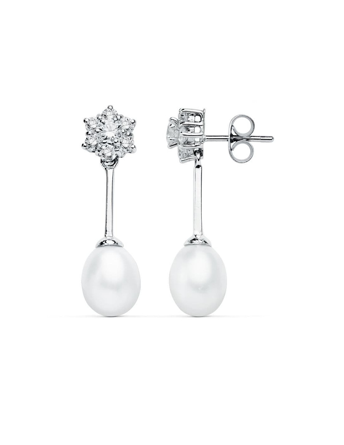 PENDIENTES ORO BLANCO 9 KTES PERLA. 30 X 8 MM.