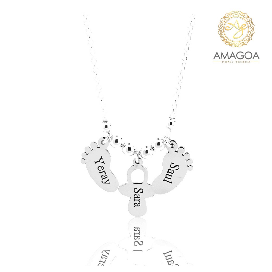 Gargantilla Plata, bolas de plata, pies y chupete personalizada