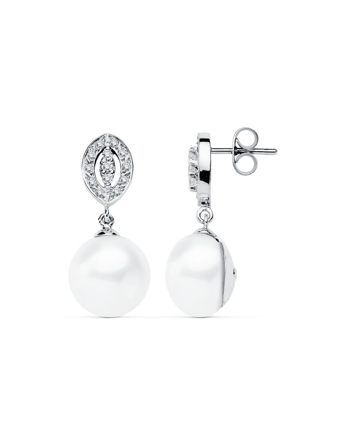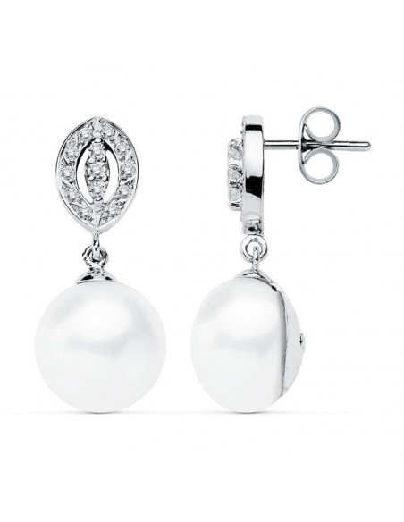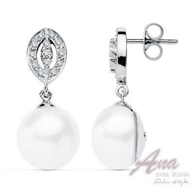 PENDIENTES ORO BLANCO 9 KTES PERLA. 27 X 11 MM.