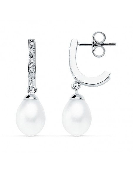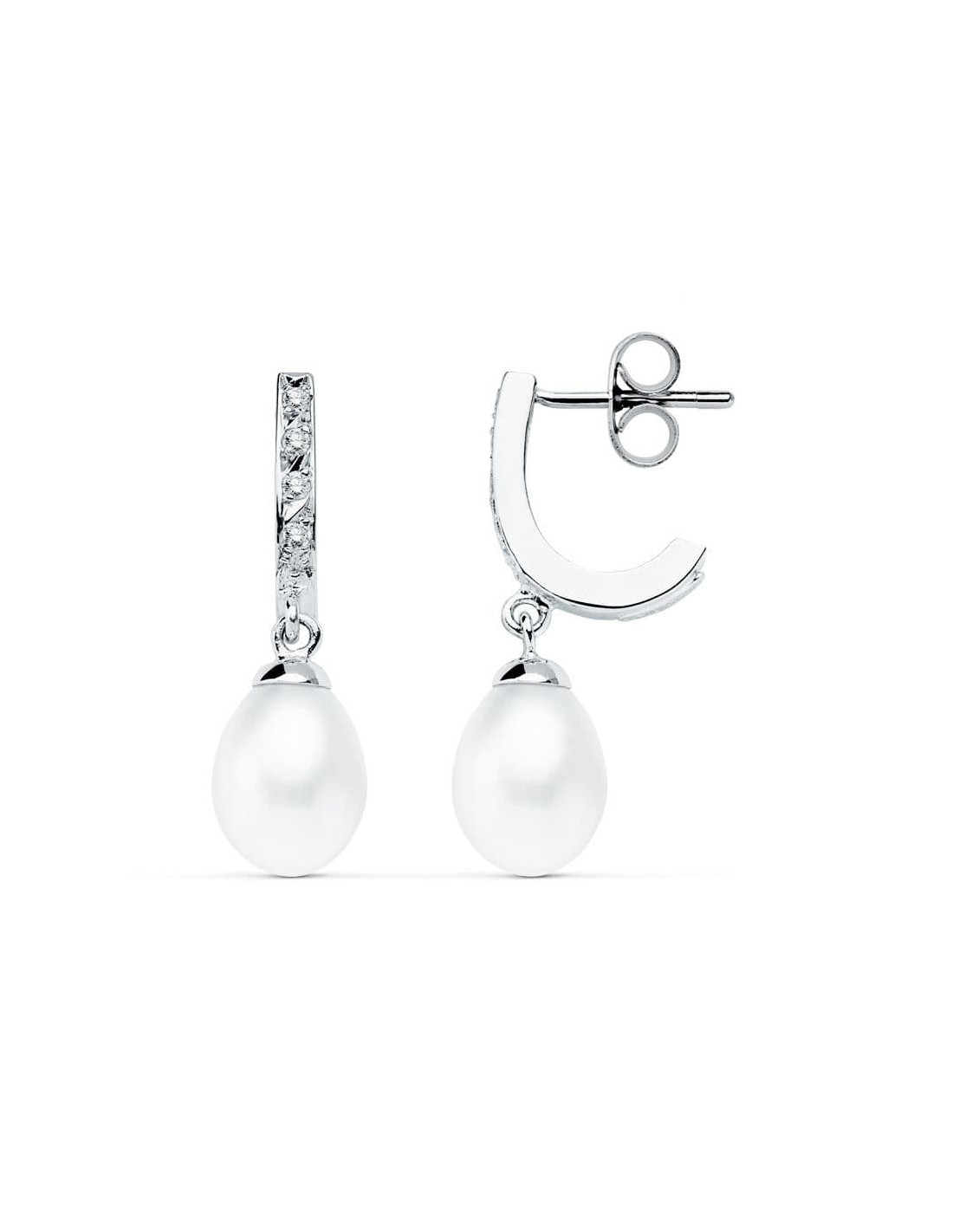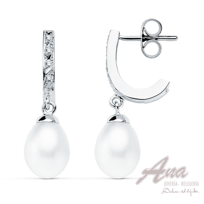 PENDIENTES ORO BLANCO 9 KTES PERLA. 25 X 7 MM.