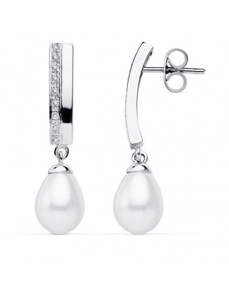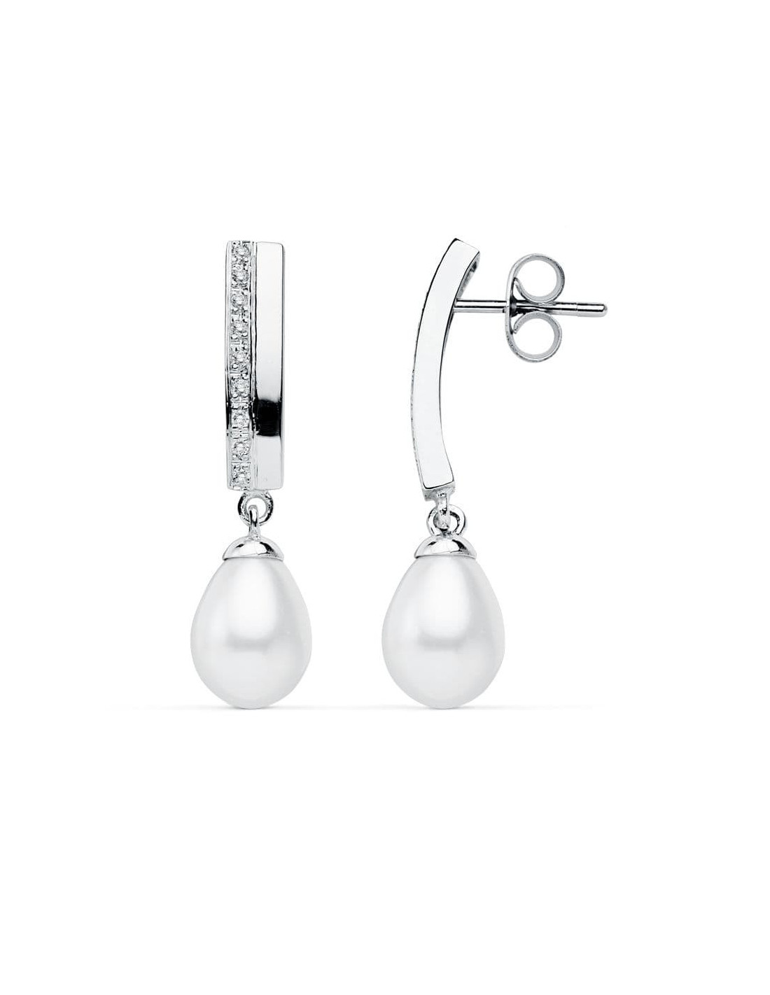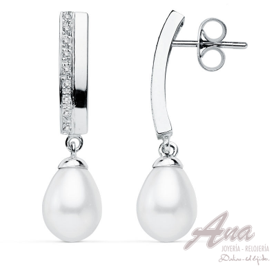 PENDIENTES ORO BLANCO 9 KTES PERLA. 30 X 7 MM.