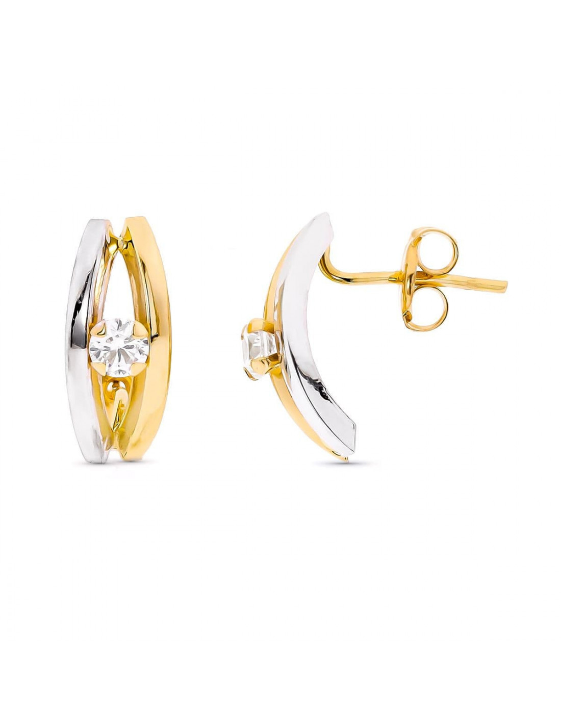 9K PENDIENTES ORO BICOLOR BANDAS CON CIRCONITAS CIERRE PRESION