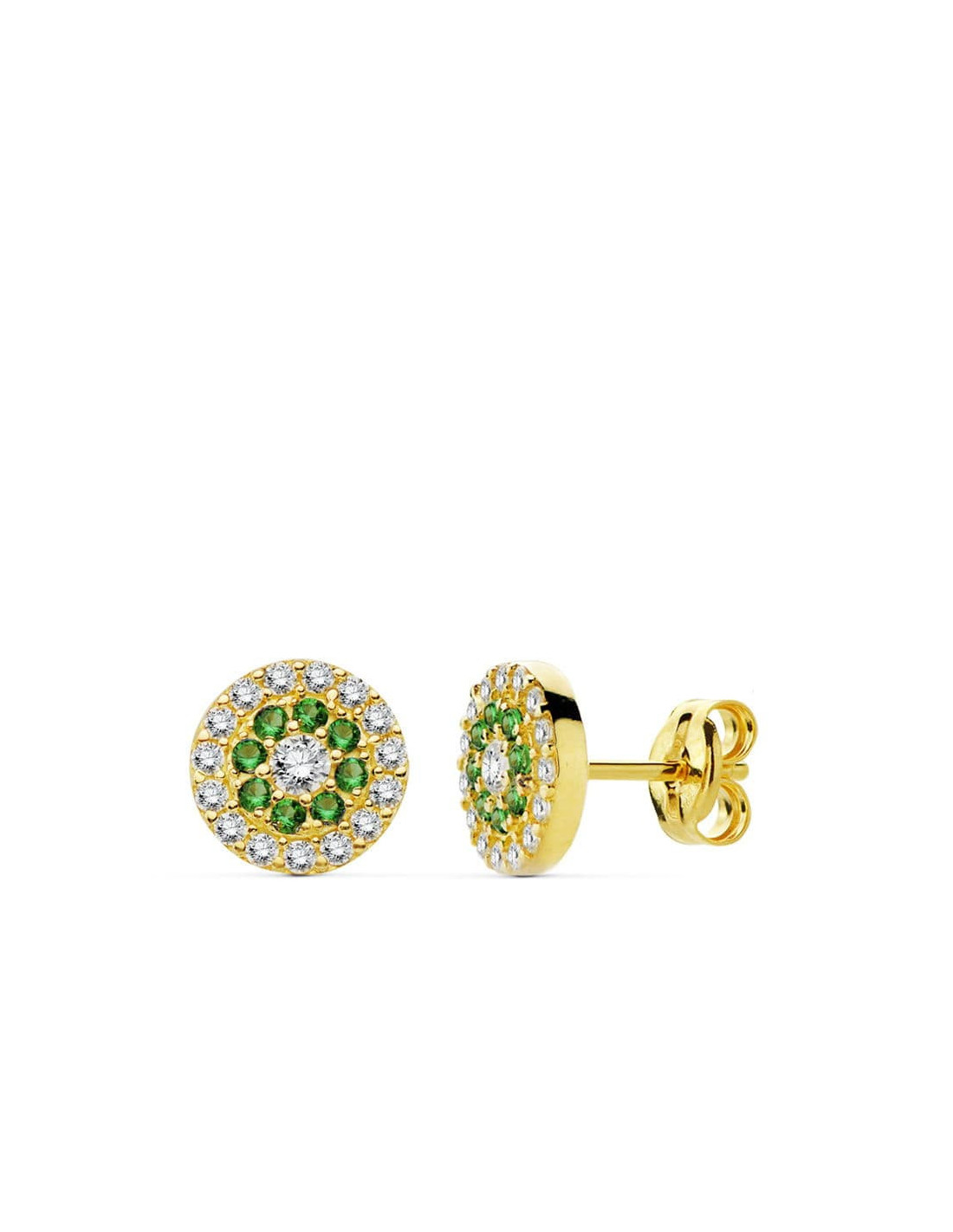 18K PENDIENTES ORO AMARILLO PIEDRAS VERDES 7 MM