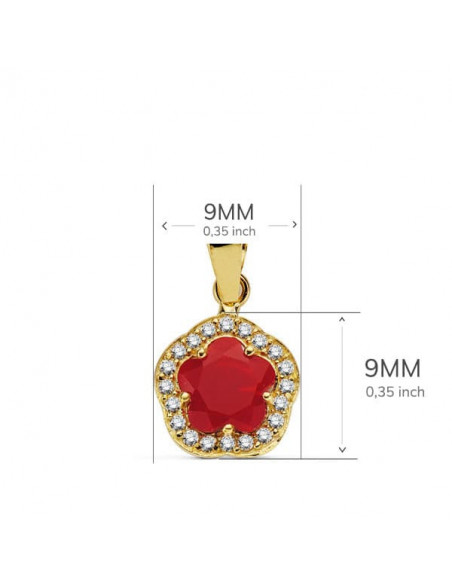 18K COLGANTE ORO AMARILLO FLOR PIEDRA ROJA 9 X9 MM