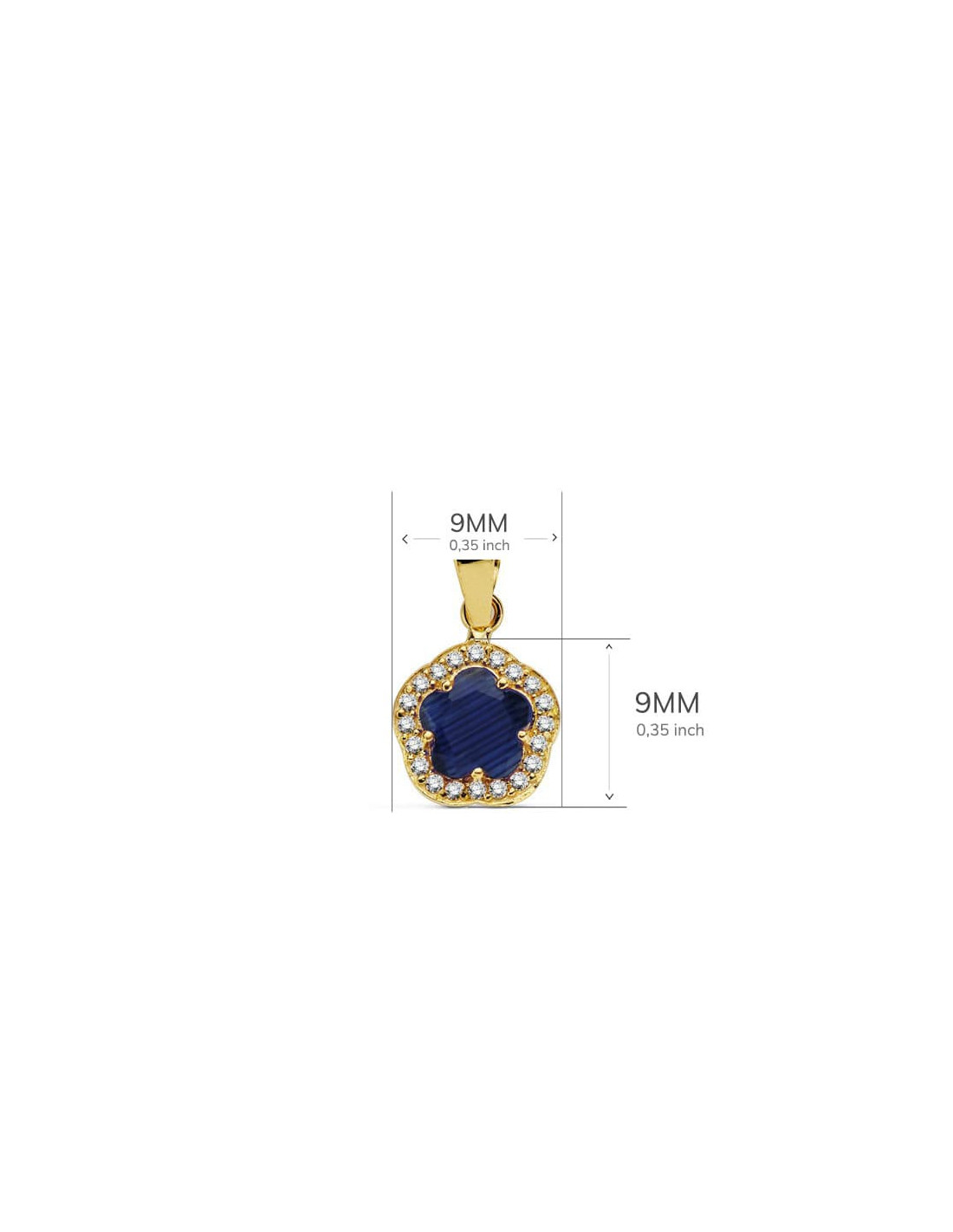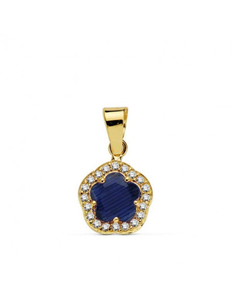 18K COLGANTE ORO AMARILLO FLOR PIEDRA AZUL 9 X9 MM