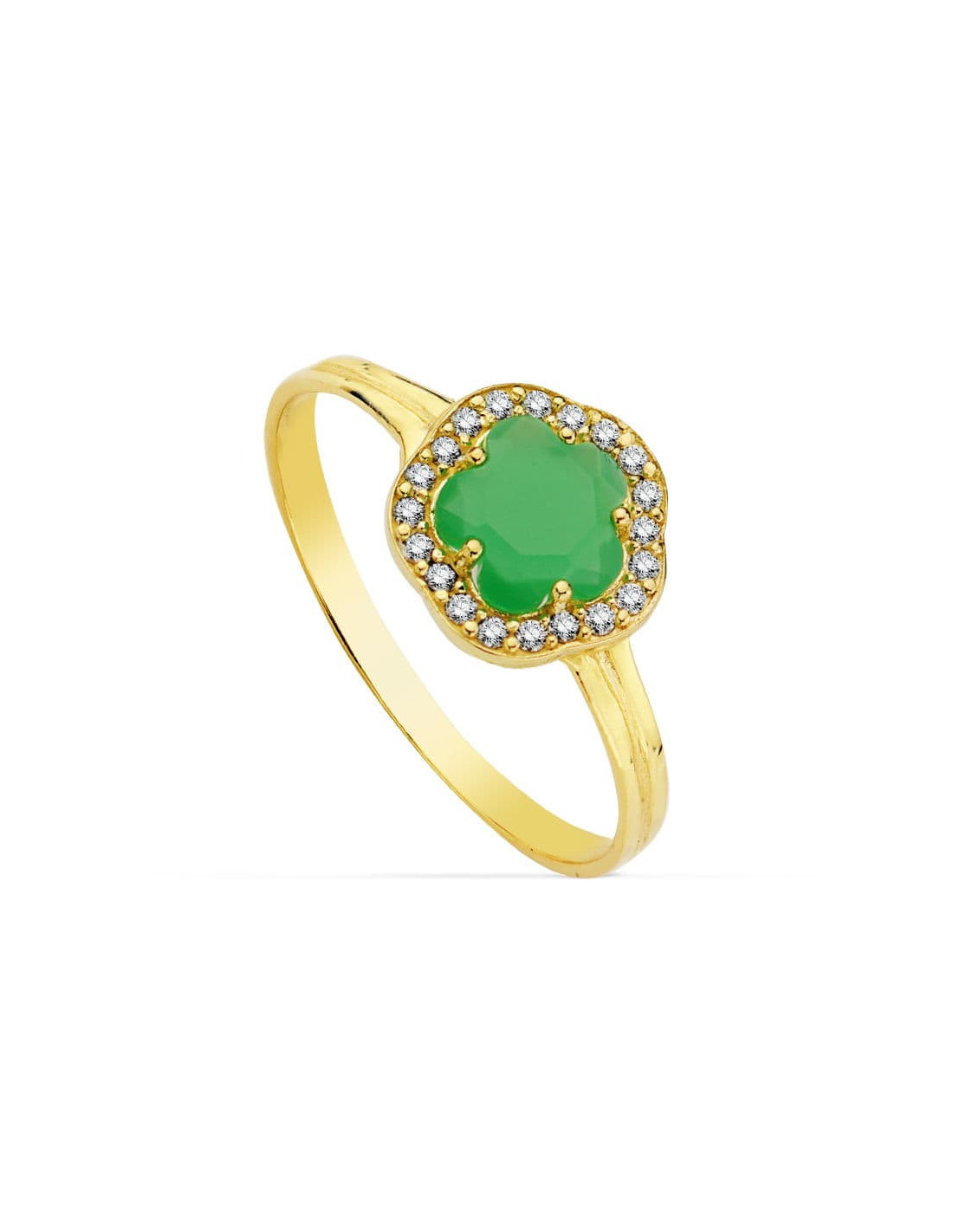 18K SORTIJA ORO AMARILLO FLOR PIEDRA VERDE 6 MMCIRCON.