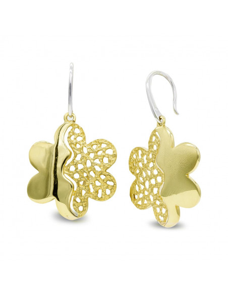 18K PENDIENTES ORO BICOLOR LARGOS FLOR