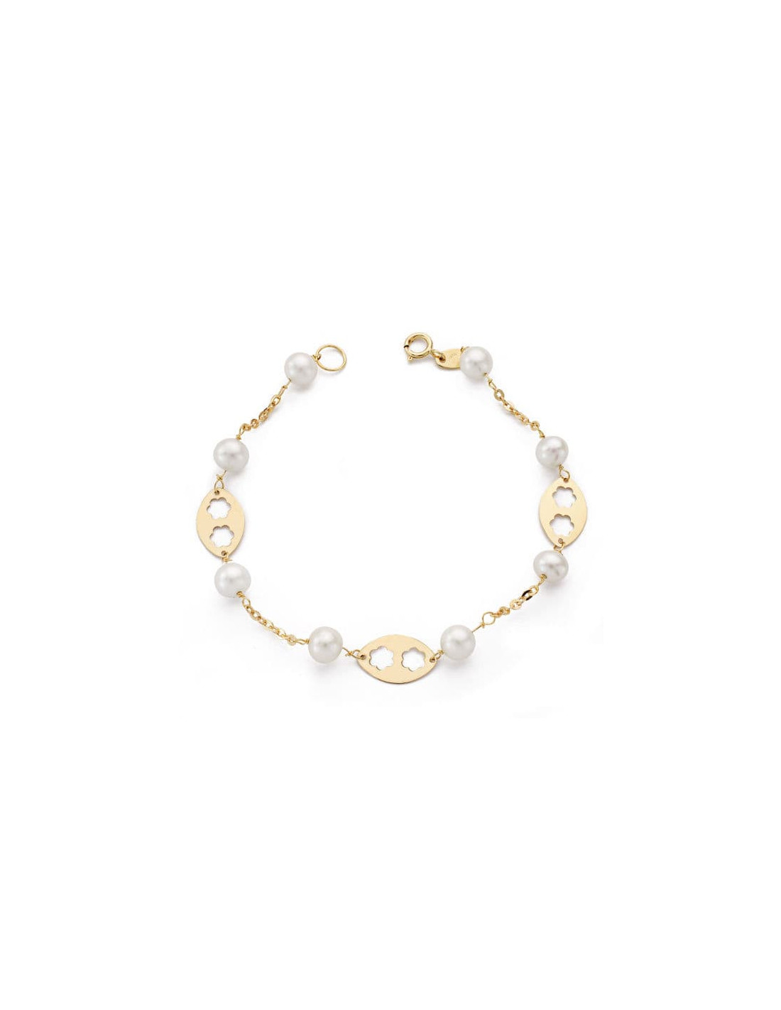 9K PULSERA PERLA Y MOTIVOS. 18 CM