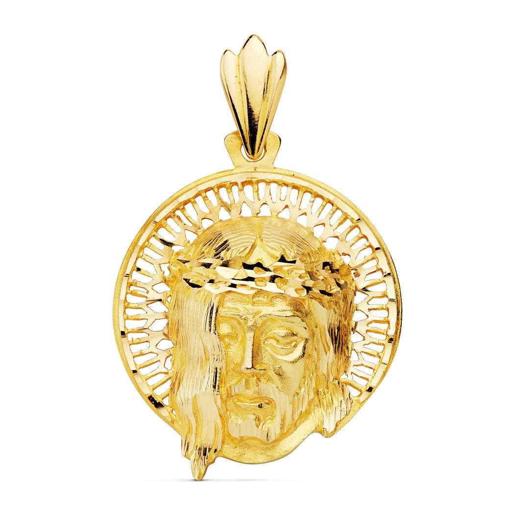 18K CABEZA CRISTO AUREOLA 29X26 MM