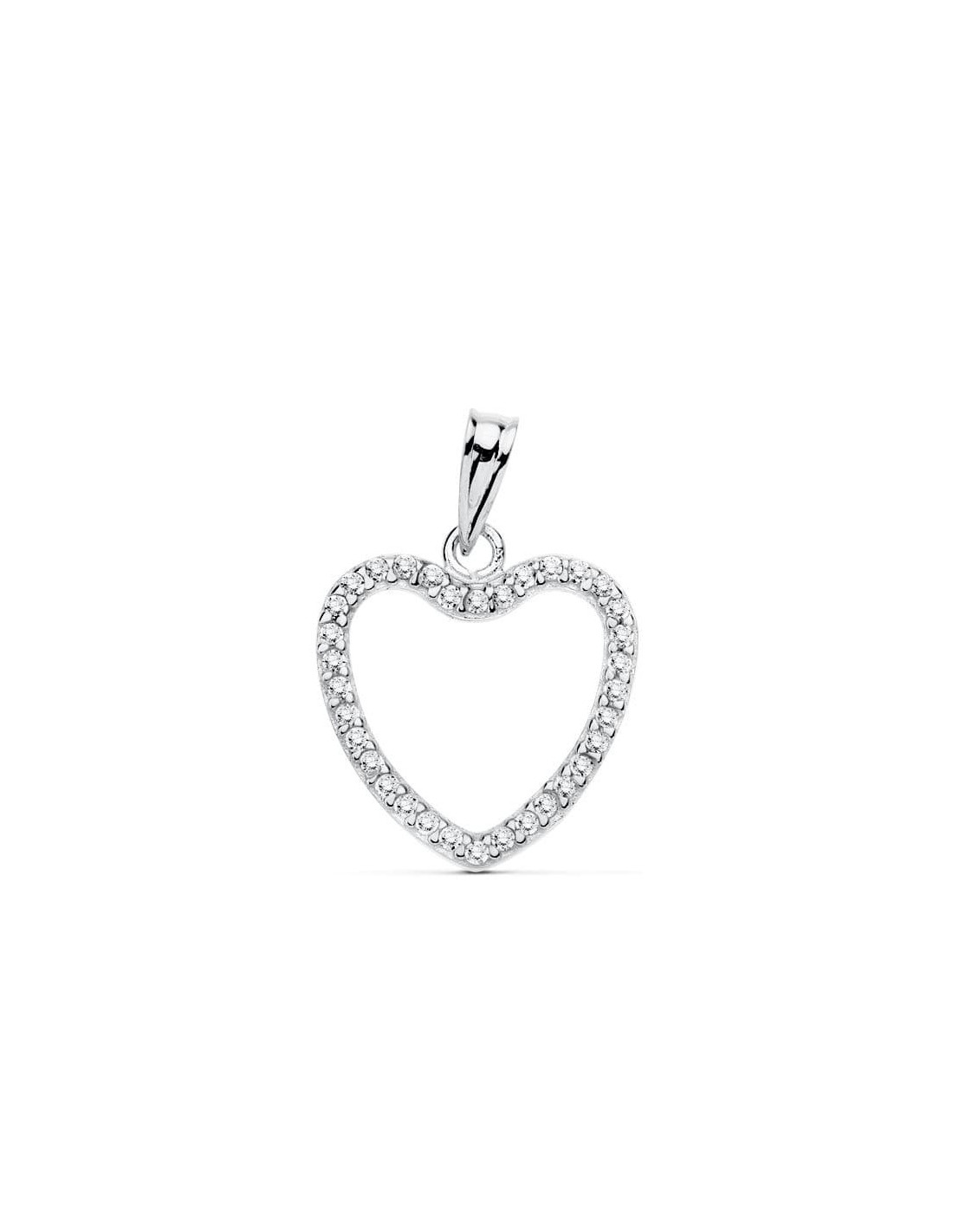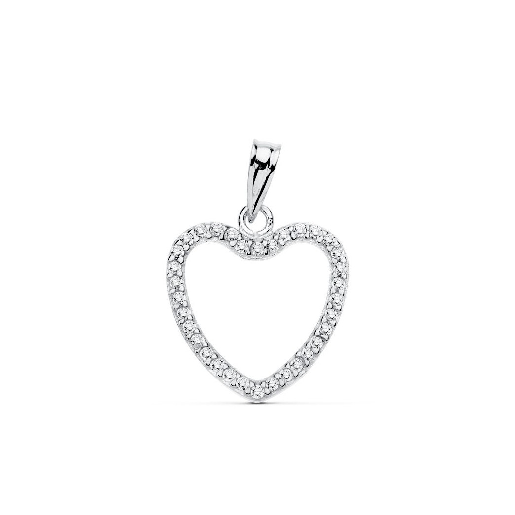 18K COLGANTE CORAZON ORO BLANCO CIRCONITAS 16X16 MM