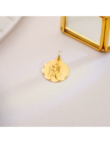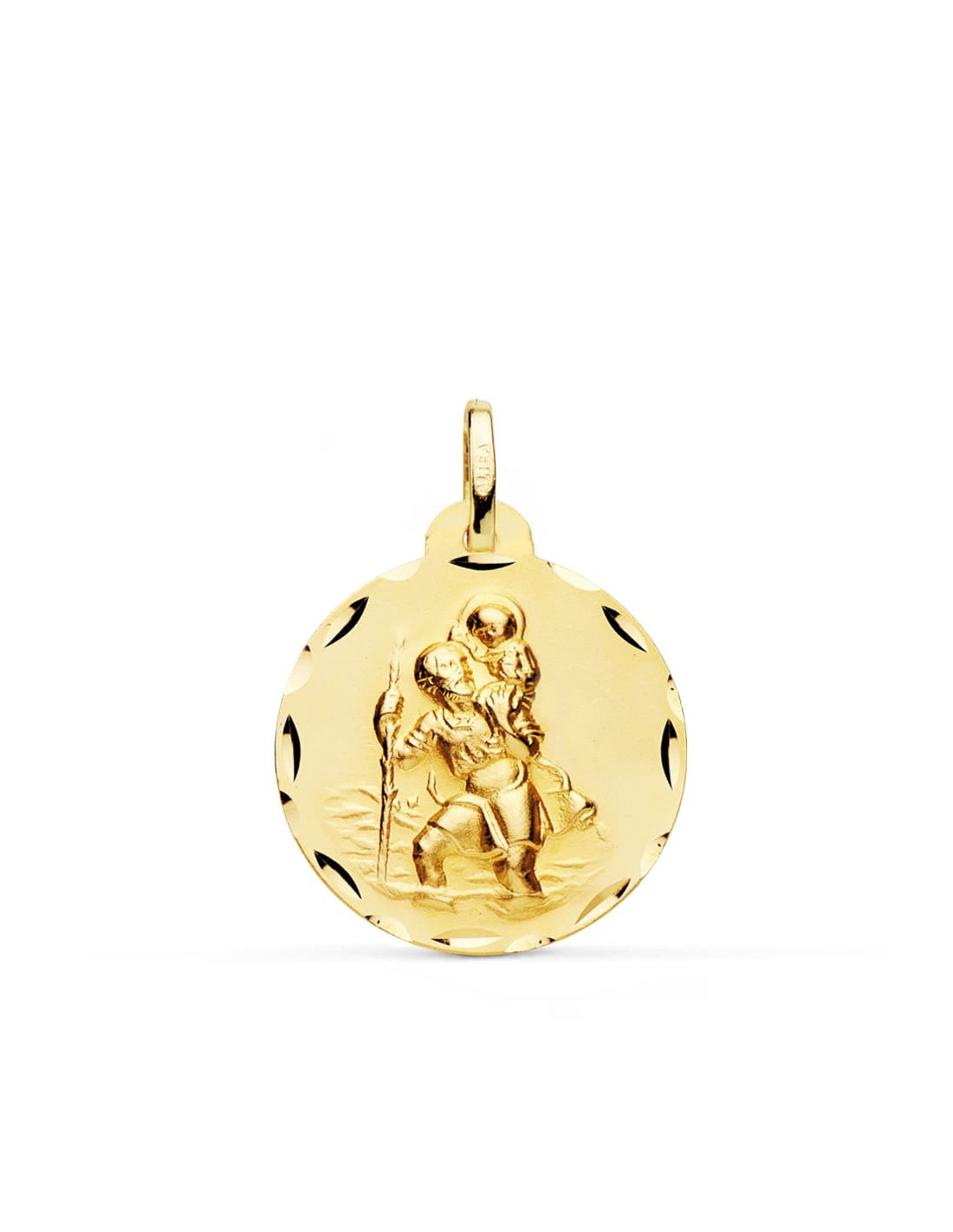 18K MEDALLA SAN CRISTOBAL TALLADA 22 MM