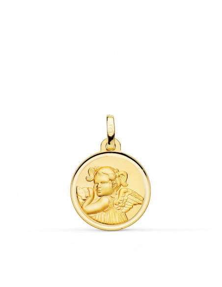 18K MEDALLA ORO AMARILLO ANGEL NIÑA REVOLTOSA BISEL 16 MM