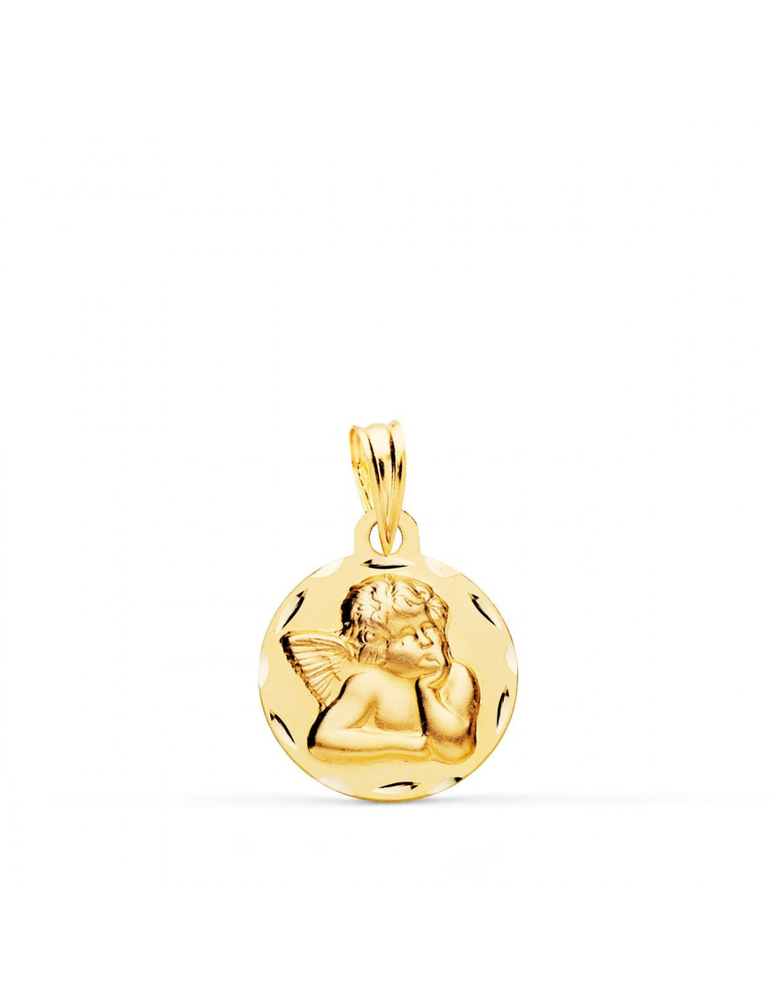 18K MEDALLA REDONDA ANGELITO BURLON TALLADA 14 MM