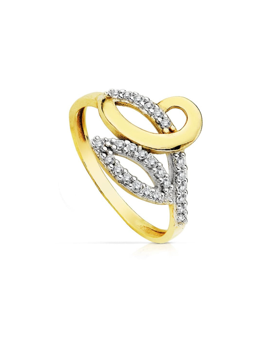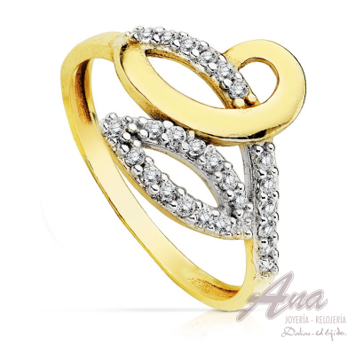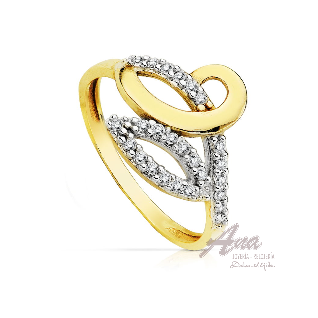 SORTIJA 9KTES. BICOLOR CIRCONITAS.