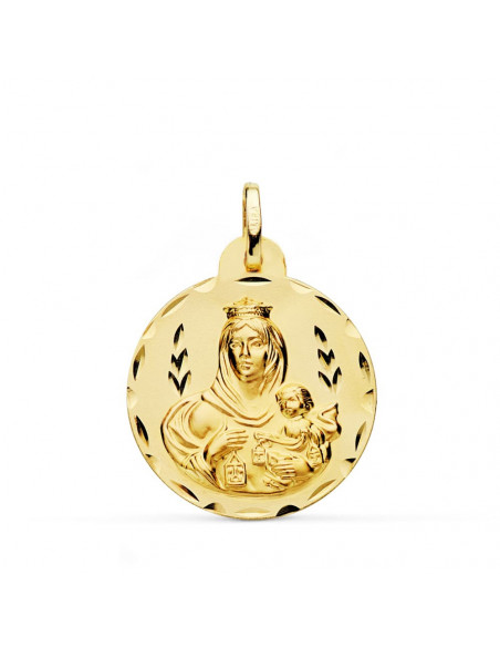 18K MEDALLA VIRGEN DEL CARMEN TALLADA 24 MM