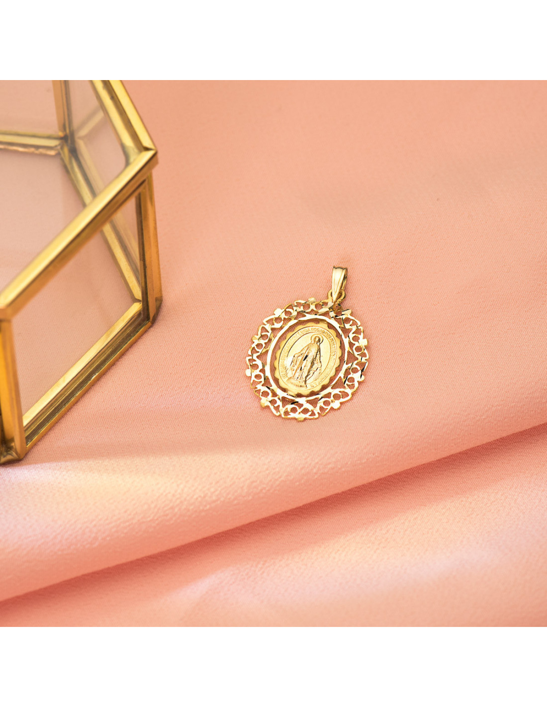 18K MEDALLA VIRGEN DE LA MILAGROSA CERCO 27X21 MM 3.50 GR
