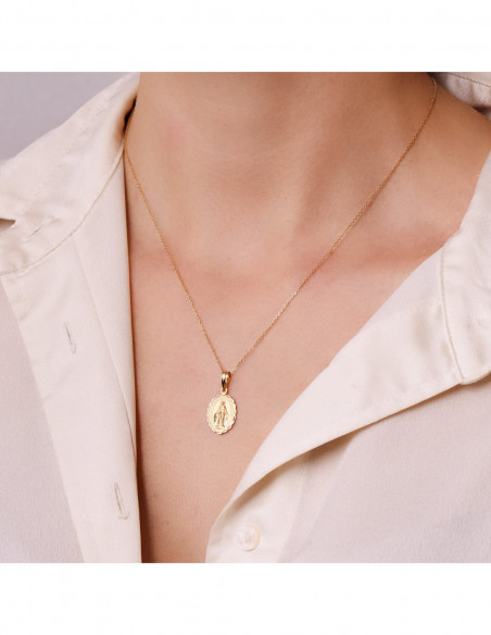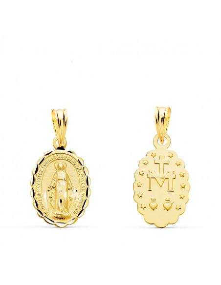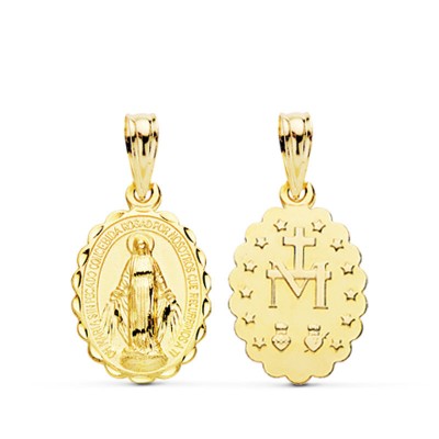 18K MEDALLA VIRGEN DE LA MILAGROSA OVAL TALLADA 15X11 MM