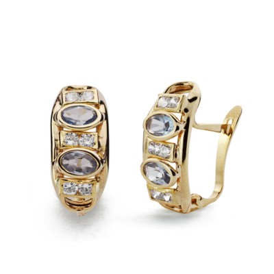 9K PENDIENTES ORO AMARILLO BANDAS CON CIRCONITAS 16X7 MM CIERRE CATALAN