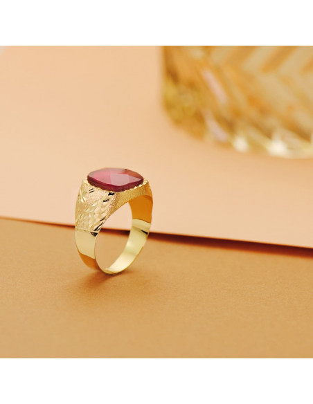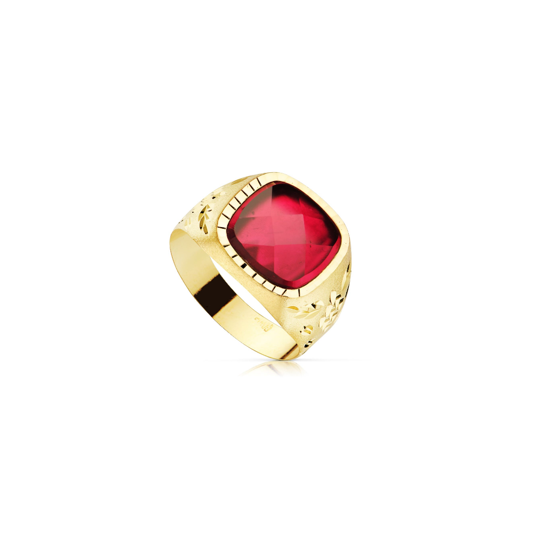 9K SELLO ORO AMARILLO HUECO PIEDRA ROJA LATERAL TALLADO 14 MM