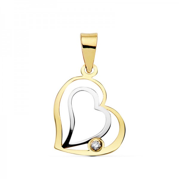 18K COLGANTE CORAZON BICOLOR 16X14 MM
