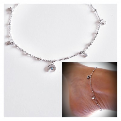 TOBILLERA LUNA CRECIENTE Y ESTRELLITAS