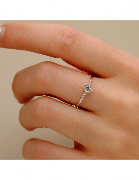 18K SORTIJA DIAMANTES 0.030 QT+ OVAL AGUAMARINA NATURAL 4X3 MM CUERPO 1.30 MM
