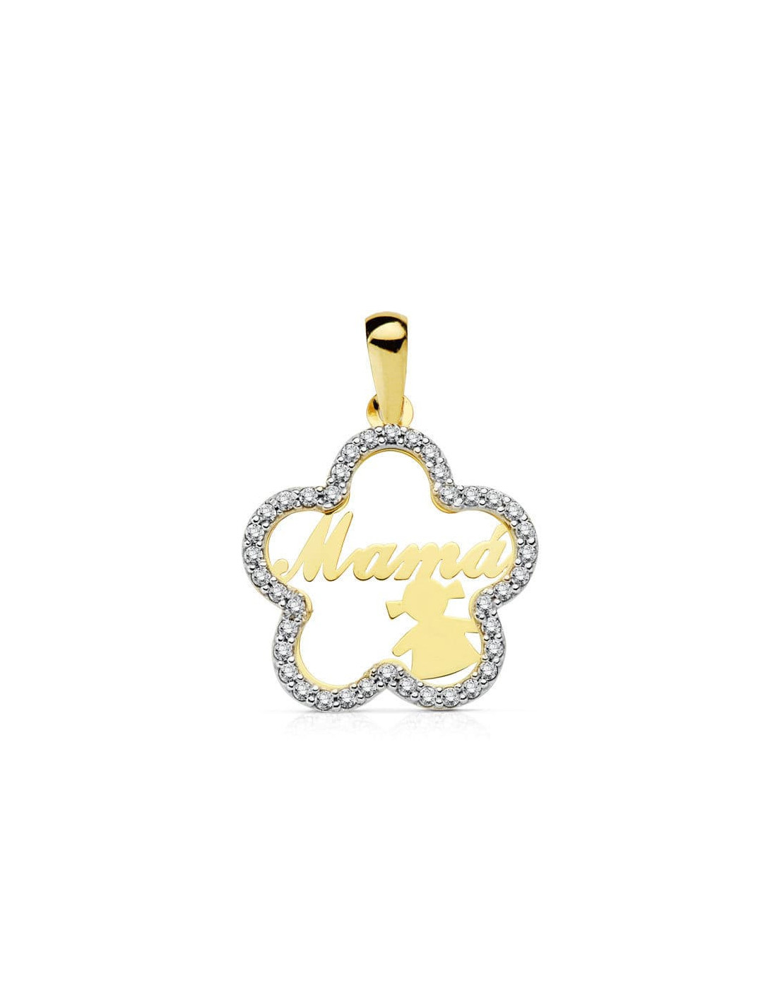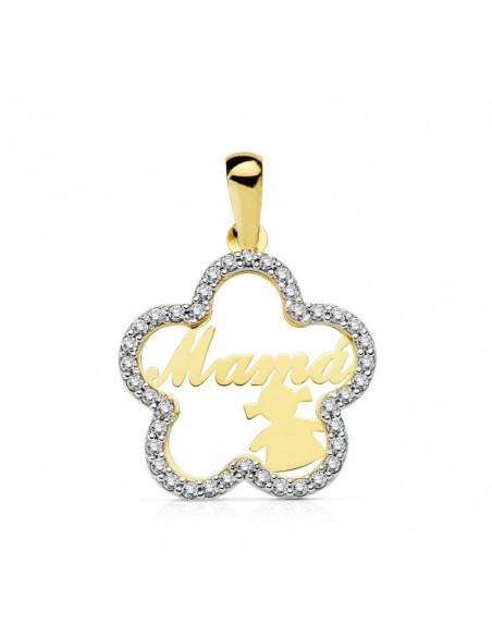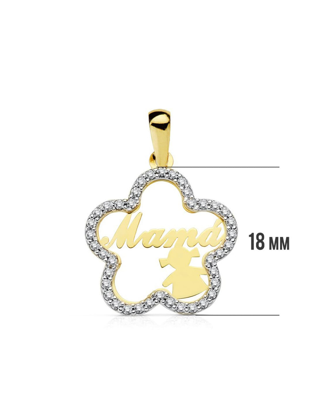 18K COLGANTE MAMA BICOLOR FLOR CON NIÑA 18 MM