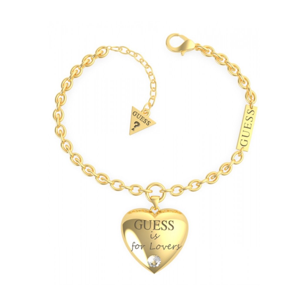 PULSERA GUESS ACERO DORADO CON COLGANTE CORAZON.