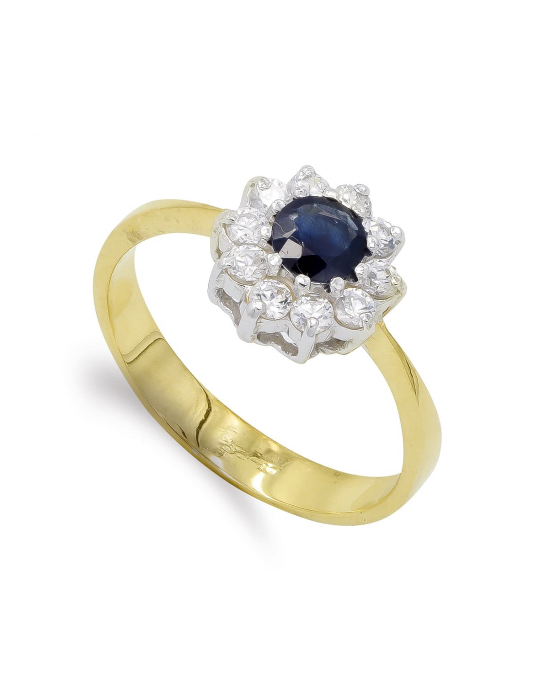 18K SORTIJA ORO BICOLOR ZAFIRO 5 MM Y CIRCONITAS