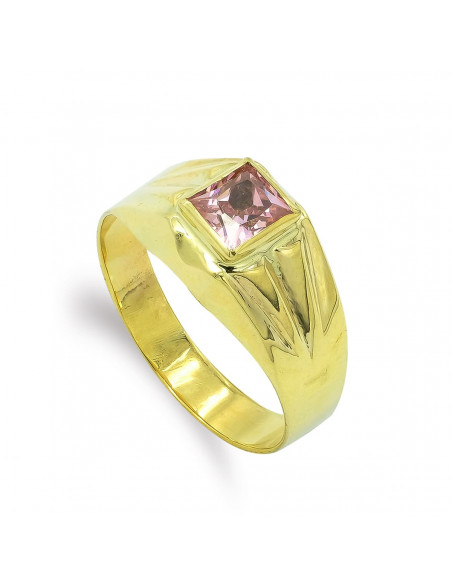 9K SORTIJA SELLO ORO AMARILLO BEBE CIRCONITA ROSA 4 MM