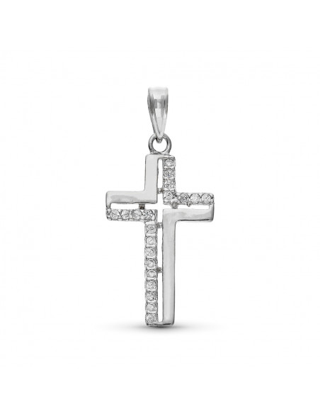 9K CRUZ ORO BLANCO CON CIRCONITAS 25 X 13 MM