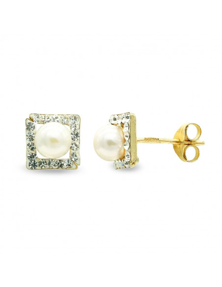 9K PENDIENTES PERLA 4 MM Y CIRCONiTAS PRESION