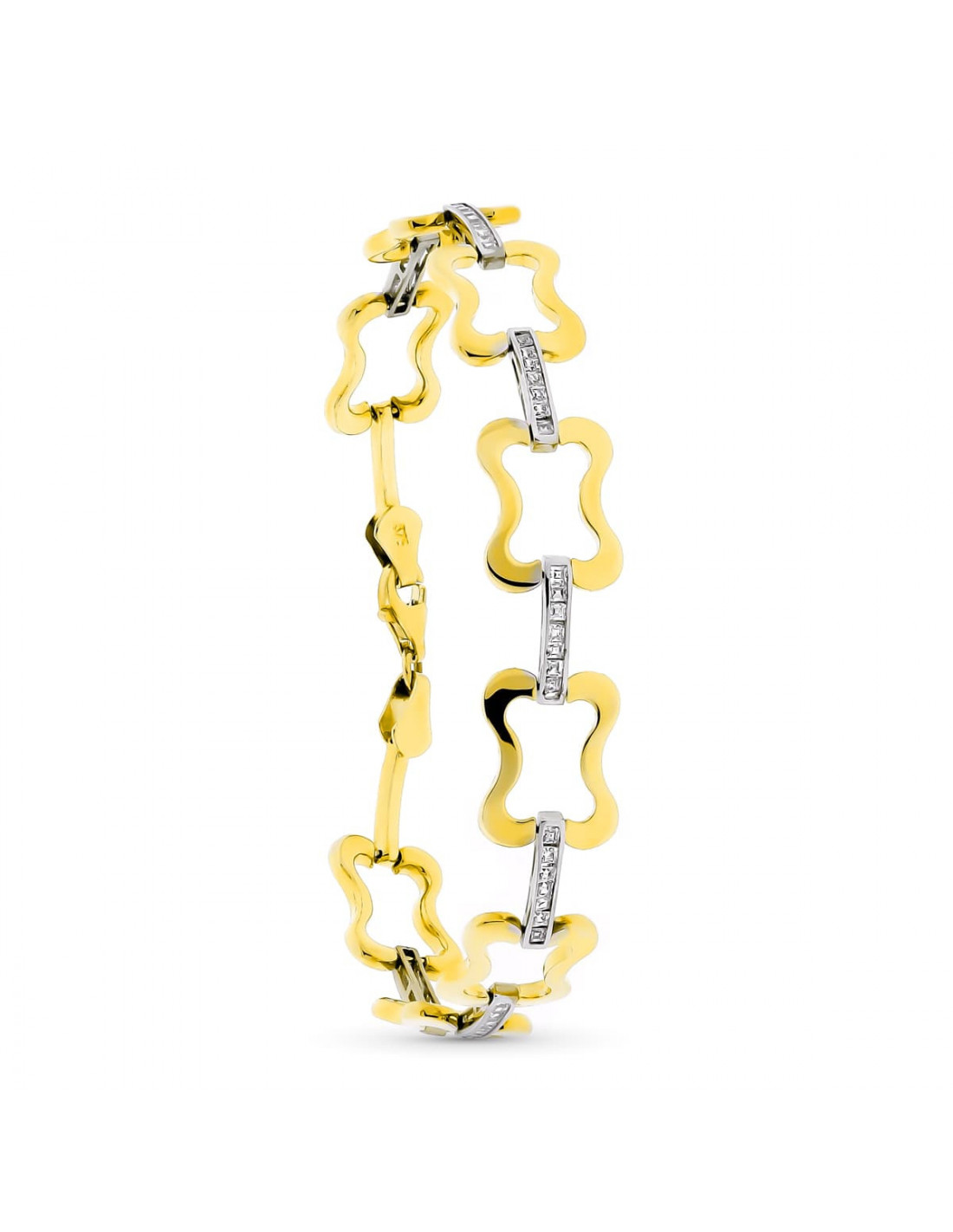 9K PULSERA ORO BICOLOR CON CIRCONITAS 19 CM