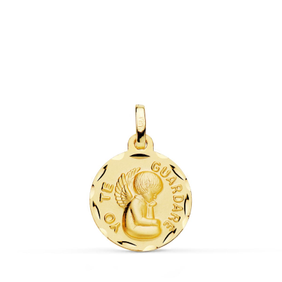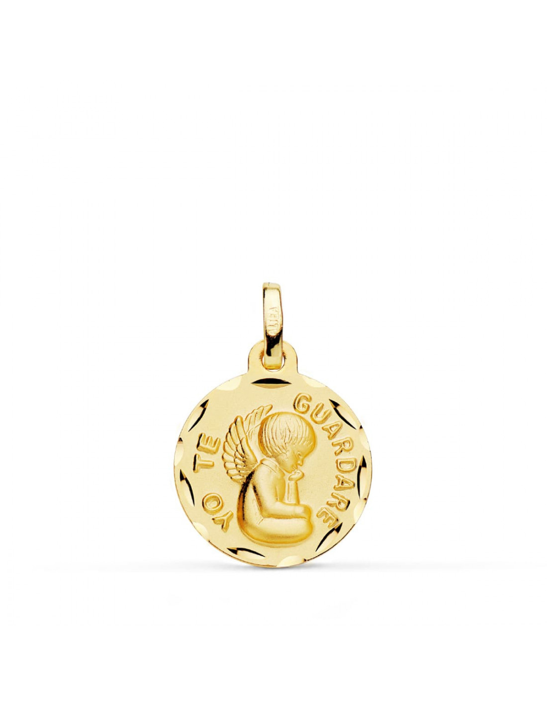 9K MEDALLA TALLADA ANGEL YO TE GUARDARE 16 MM