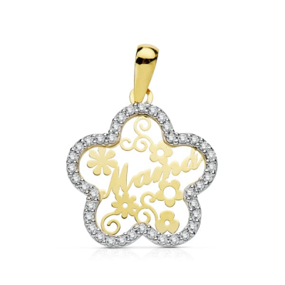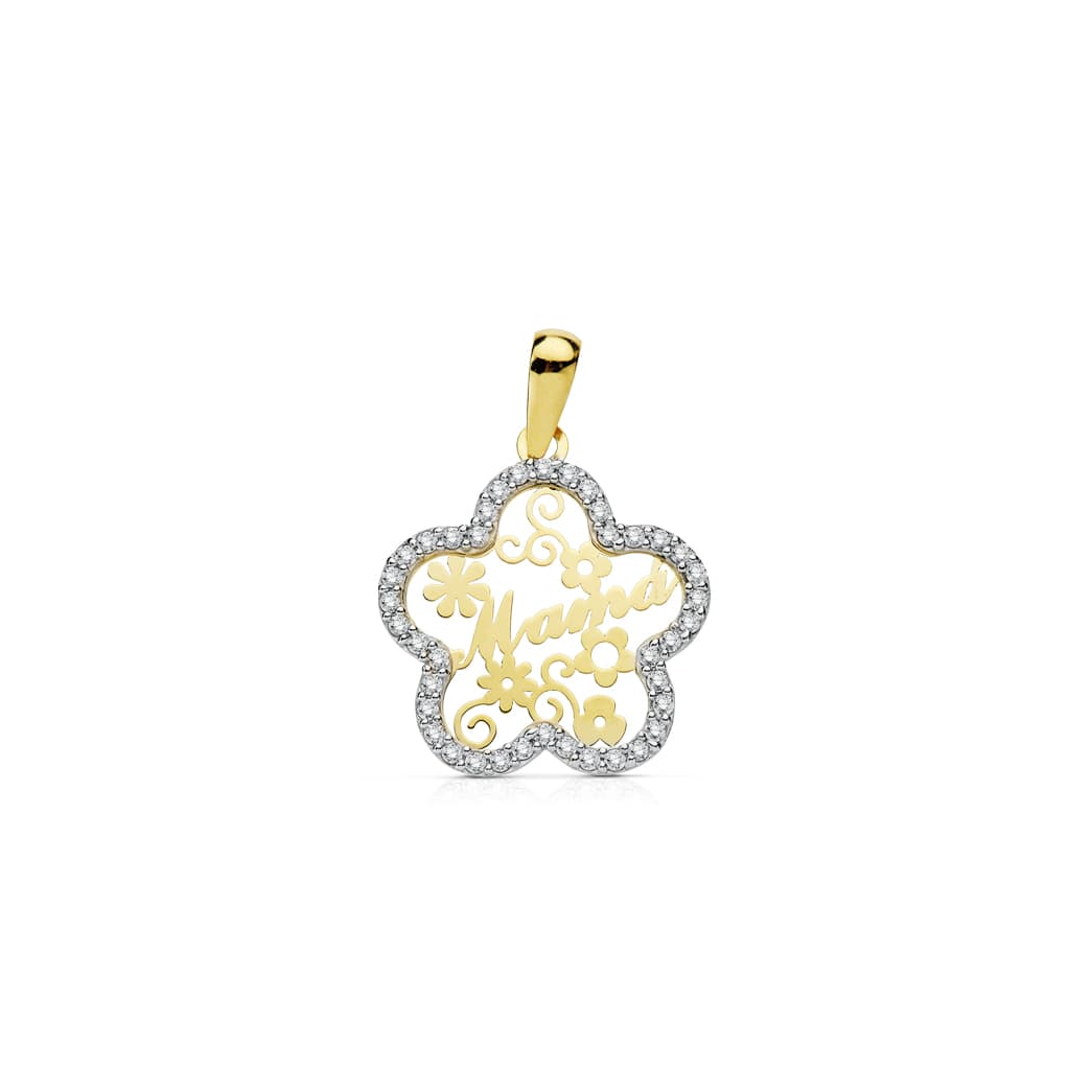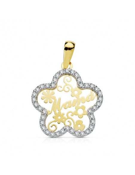 9K COLGANTE MAMA CIRCONITAS FLOR 18 MM