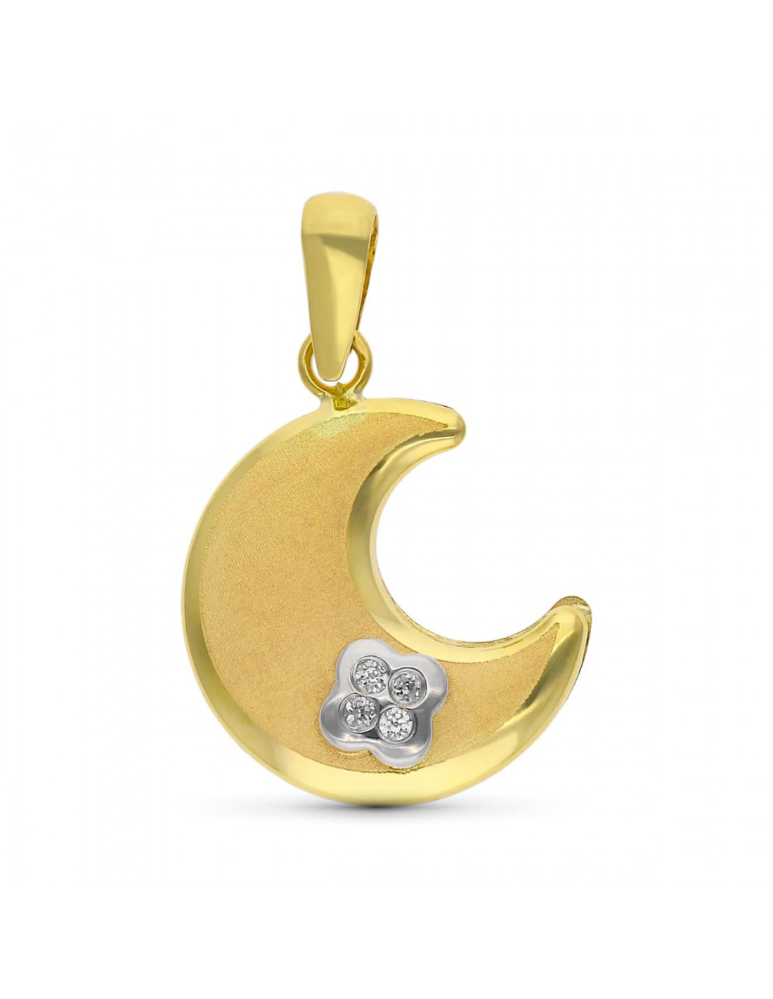 9K COLGANTE ORO BICOLOR LUNA CON TREBOL MINI DE CIRCONITAS