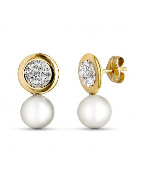 9K 9K PENDIENTES REDONDO Y PERLA 15X8 MM PRESION