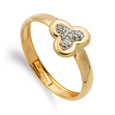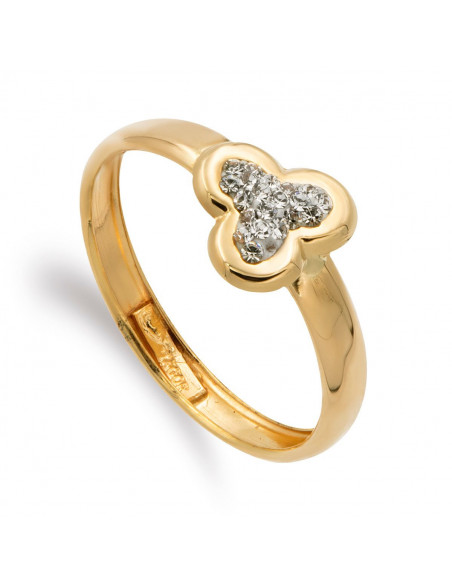 9K SORTIJA ORO AMARILLO BANDA CON MOTIVO TREBOL Y CIRCONITAS