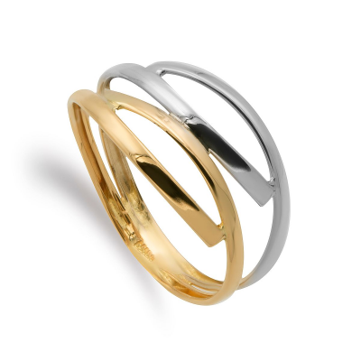 9K SORTIJA ORO BICOLOR DOS CUERPOS DE BANDAS Y ACABADO BRILLO