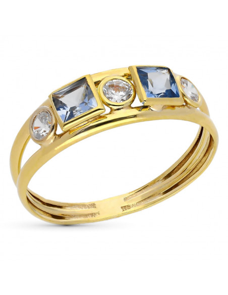 9K SORTIJA ORO BICOLOR AGUAMARINA ANCHO TOTAL 6 MM