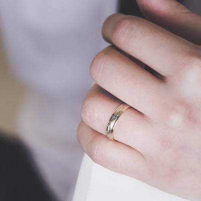 Alianza de boda oro bicolor zig-zag 4mm