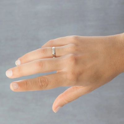 Alianza de boda de diseño original 2oros de 18K referencia 5240138, de 4 mm de ancho. Esta joya tiene un acabado estriado mate y brillante y un interior plano.