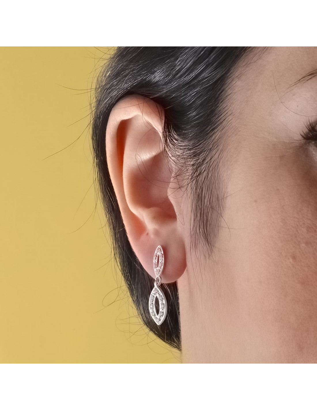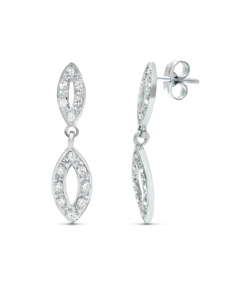 18K PENDIENTES DOS CUERPOS ORO BLANCO JUEGO NOVIA CIRCONITAS 25X6 MM PRESION