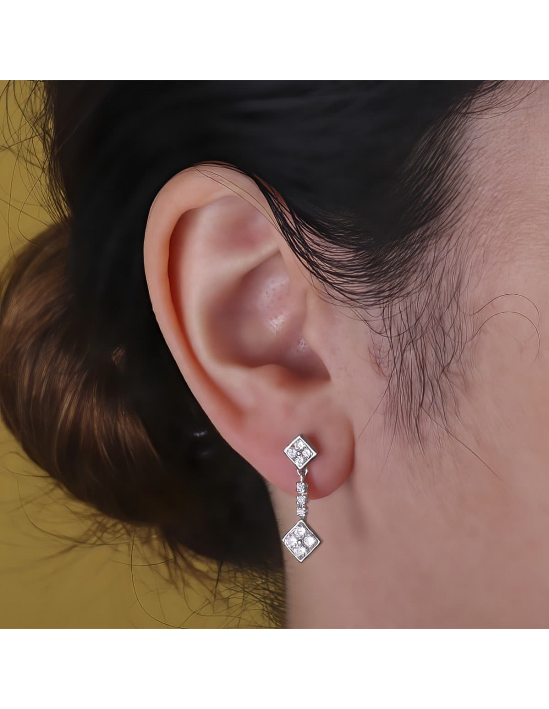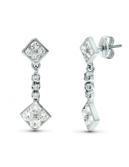 18K PENDIENTES ORO BLANCO DOBLE CUERPO JUEGO NOVIA CIRCONITAS 23X8 MM PRESION