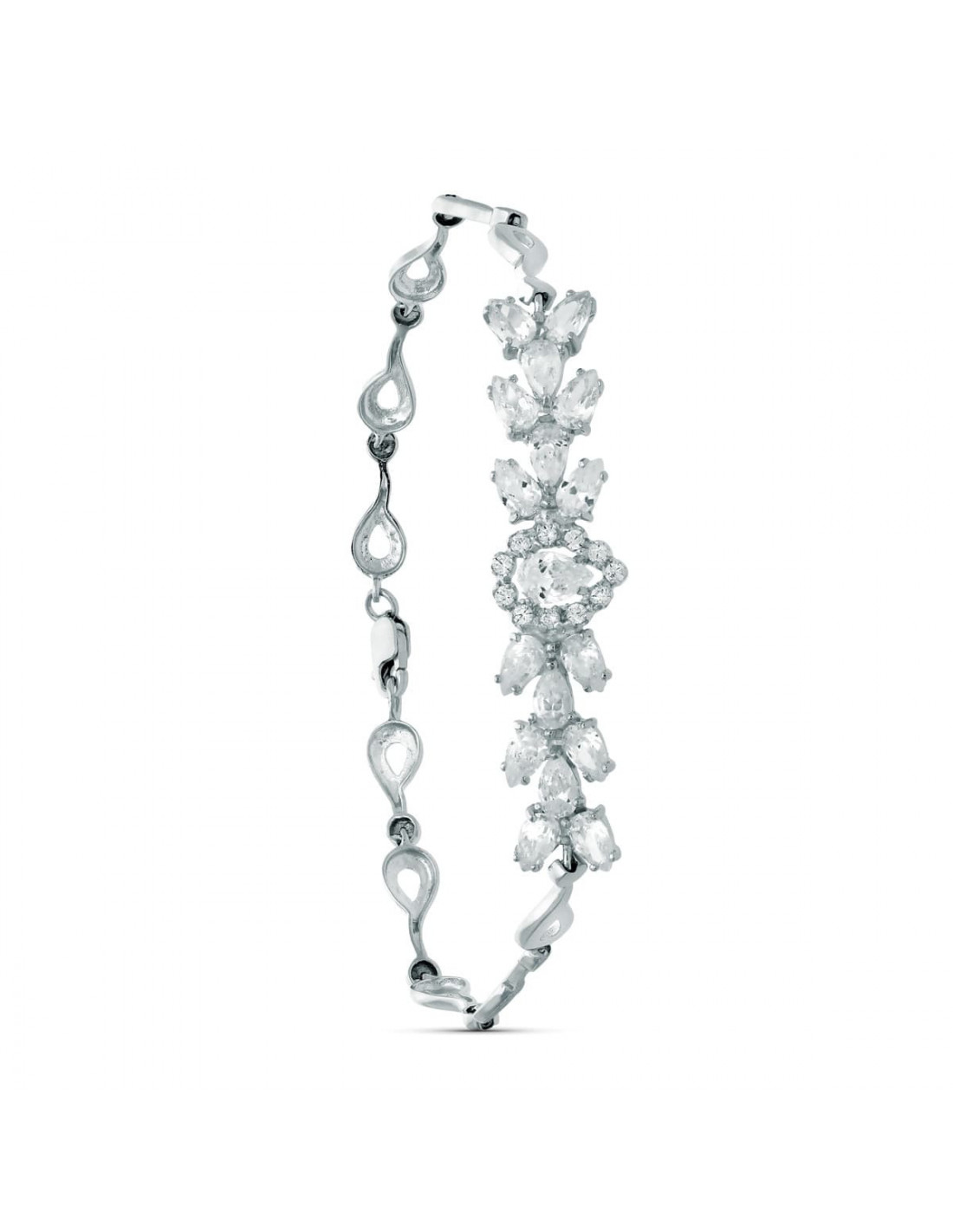 18K PULSERA ORO BLANCO JUEGO NOVIA CIRCONITAS 18.50 CM CIERRE MOSQUETON