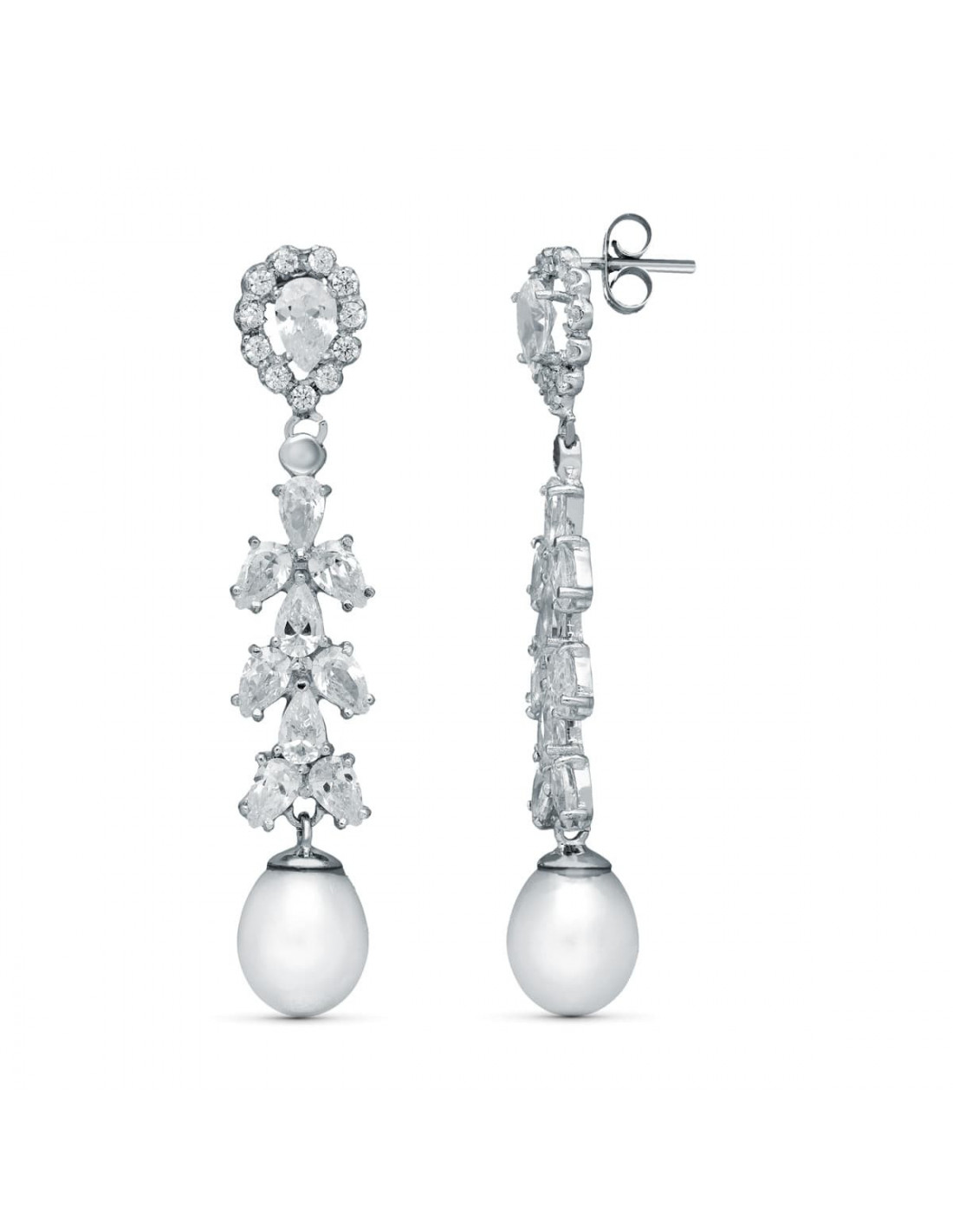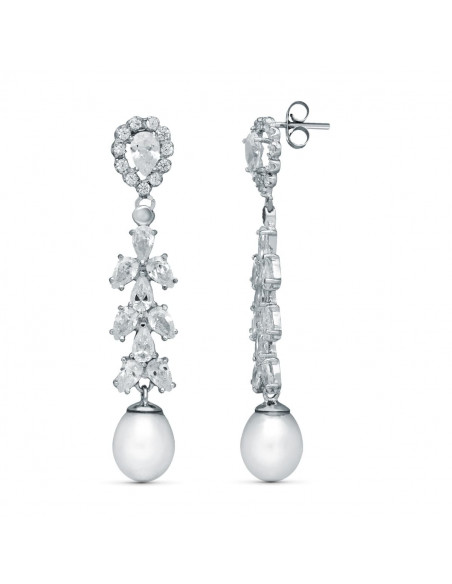 18K PENDIENTES NOVIA DOS CUERPOS PERLA CULTIVADA ORO BLANCO 47X8 MM PRESION